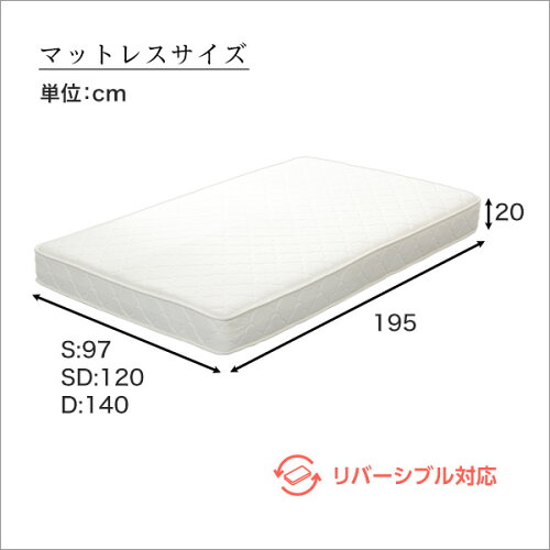 仕様詳細商品名ポケットコイル両面仕様ロールマットレス(ダブル)サイズシングル:(約)幅97x長さ195x高さ20cmセミダブル:(約)幅120x長さ195x高さ20cmダブル:(約)幅140x長さ195x高さ20cm材質張り材:ポリエステル100%クッション材:ポケットコイル、ウレタンフォーム、フェルト、不織布梱包サイズシングル:(約)幅28x奥行28x高さ102cmセミダブル:(約)幅39x奥行39x高さ67cmダブル:(約)幅39x奥行39x高さ78cmメンテナンスこの商品は表裏の両面にクッション層がある「リバーシブル対応」構造です。