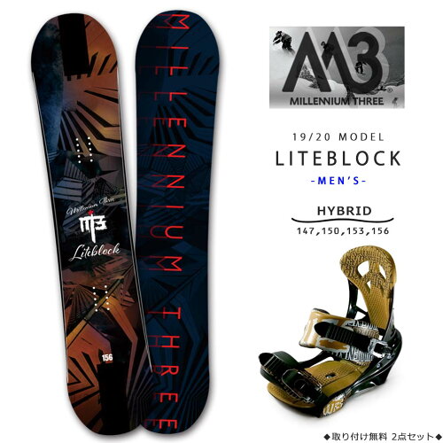 ◆ M3(MILLENIUMTHREE) スノーボード 板 バインディング メンズ 2点セット 2020モデル LITEBLOCK オールラウンド ハイブリッド ツイン キャンバー/ Wロッカー ボード ◆ スノーボード/ビンディングの2点セット。