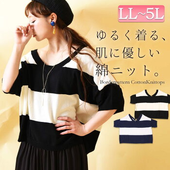 大きいサイズ レディース 存在感のある太めボーダーで大人の着こなしを♪ トップス 五分袖ニット ボーダー柄ニット ボーダー柄 5分袖 春 夏 春夏 春物 夏物 LL 2L 3L 4L 5L XL XXL LLサイズ 13号 15号 17号 19号 ブラック 黒 アイボリー ネイビー 紺 オフホワイト