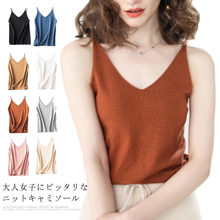 サマーニット レディース キャミソール ニットトップス ニットキャミ インナー 下着 インナーニット インナーキャミ 薄手ニット 無地ニット リブニット Vネック 伸縮性 キレイめ セクシー 大人 こなれ感 夏新作