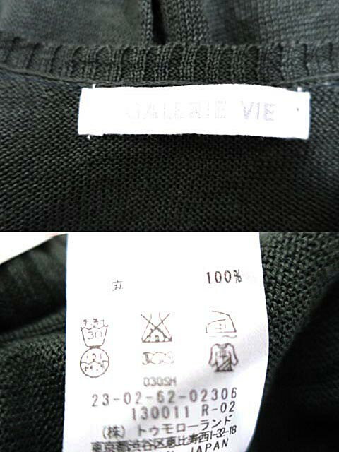 【ブランド/メーカー】【中古】GALERIE VIE ギャルリーヴィー 【カテゴリ】トップス 【色】グリーン 【サイズ】S 【サイズ詳細】 総丈約61cm、身幅約48cm、裄丈約78cm 【素材】 画像参照 【状態】 USED 【コメント】 前側ところどころツレあり。